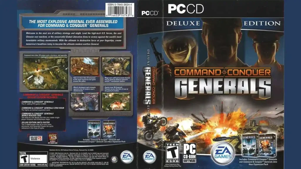 Command & Conquer Generals Deluxe Edition is a definitive collection that brings together the original Command & Conquer Generals and its acclaimed expansion Zero Hour. This real-time strategy classic lets you choose from three global factions — USA, China, and the Global Liberation Army — each with unique units, tactics, and superweapons.
